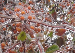 木の小枝の1本1本、葉っぱの1枚1枚それぞれが氷で包み込まれた様子はなかなか美しいです。