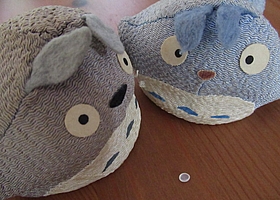 ![]() 机の上にトトロが二人(まぐろとツナ) と悩む私に、外野陣がわーわーと |