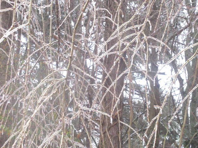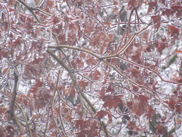 氷に覆われた散り損ねの楓と、 縮小すると何かわからない白い塊になるので