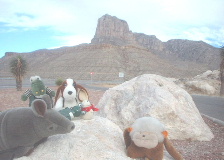 | 12月30日、Guadalupe mountain 国立公園(地図「2」)。 州内の最高峰(8749ft.≒2667m)だそうだ。 この日は横を通過しただけだけど 夏にはたくさんの花が咲き乱れて綺麗になるから その頃、絶対にまた来ようねと約束したのに… |