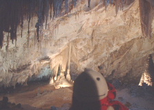| Carlsbad鍾乳洞国立公園(地図「3」)。 物凄く大きな鍾乳洞だった。 夏にここに来ればコウモリの大群に会えるらしい。 今は残念ながら季節外れだけれど 私たちはコウモリぬいの「ウンブレロ」君と出会えた。 |